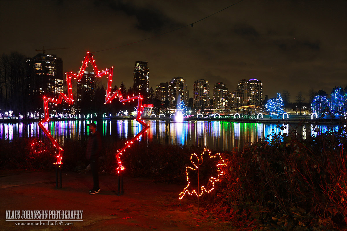 Joulukuun toisen valokierroksen aika koitti muutamaa viikkoa myöhemmin appivanhempien saavuttua jouluksi luoksemme. Näiden, sekä pienen tyttäremme kanssa kävimme katsastamassa uudelleen Rae Streetin ihmeen sekä Lafarge Laken ympäristön jouluvalot, joka on koko Vancouverin alueen parhaimpia ja helpoiten saavutettavia ilmaistapahtumia joulukuun aikana.